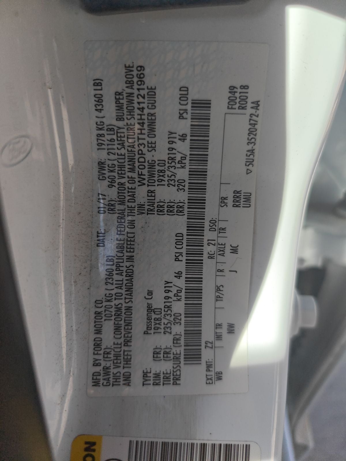 - Front Tire Size: P235/35YR19