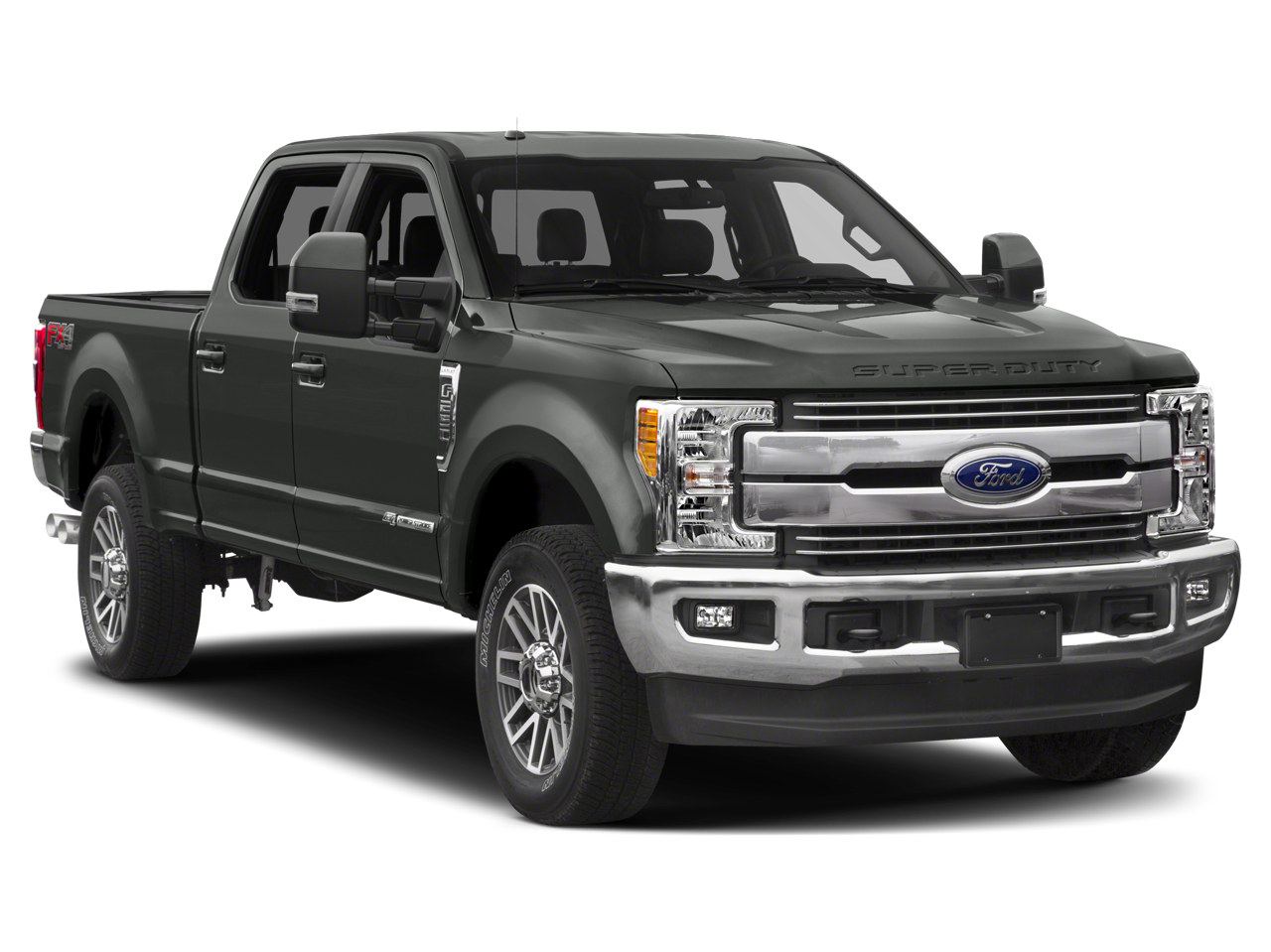 This 2019 Ford F-350SD Lariat in Stone Gray comes with the following features: Power Stroke 6.7L V8 DI 32V OHV Turbodiesel TorqShift 6-Speed Automatic 4WD 5th Wheel/Gooseneck Hitch Prep Package, Chrome Package (6 Angular Chrome Step Bars, Body-Color Door Handles w/Chrome Insert, Chrome Exhaust Tip, Unique Chrome Mirror Caps, and Wheels: 18 Chrome PVD Aluminum), FX4 Off-Road Package (Hill Descent Control, Off-Road Specifically Tuned Shock Absorbers, and Unique FX4 Off-Road Box Decal), GVWR: 11,300 lb Payload Package, Order Code 618A, 4WD, 10 Speakers, 110V/400W Outlet, 3.73 Axle Ratio, 4-Wheel Disc Brakes, 6 Angular Chrome Step Bar, ABS brakes, Adjustable pedals, Air Conditioning, Alloy wheels, AM/FM radio: SiriusXM, AppLink/Apple CarPlay and Android Auto, Auto-dimming Rear-View mirror, Automatic temperature control, BLIS Blind Spot Information System, Brake assist, Bumpers: chrome, Compass, Delay-off headlights, Driver door bin, Driver vanity mirror, Dual Extra Heavy-Duty Alternators (Total 377-Amps), Dual front impact airbags, Dual front side impact airbags, Electronic Stability Control, Emergency communication system: SYNC 3 911 Assist, Engine Block Heater, Exterior Parking Camera Rear, Flow-Through Console, Front anti-roll bar, Front Bucket Seats, Front Center Armrest, Front dual zone A/C, Front fog lights, Front Leather Seating Surfaces 40/Console/40, Front reading lights, Fully automatic headlights, Heated door mirrors, Illuminated entry, Leather steering wheel, LED Box Lighting, LED Roof Clearance Lights, Low tire pressure warning, Outside temperature display, Overhead airbag, Overhead console, Panic alarm, Passenger door bin, Passenger vanity mirror, Power door mirrors, Power driver seat, Power passenger seat, Power steering, Power windows, Radio data system, Radio: B&O Sound System by Bang & Olufsen, Rapid-Heat Supplemental Cab Heater, Rear Parking Sensors, Rear reading lights, Rear seat center armrest, Rear step bumper, Rear window defroster, Remote keyless entry, Remote Start System, Security system, SiriusXM Radio, Speed control, Split folding rear seat, Steering wheel mounted audio controls, SYNC 3 Communications & Entertainment System, Tachometer, Tailgate Step & Handle, Telescoping steering wheel, Tilt steering wheel, Traction control, Trip computer, Turn signal indicator mirrors, Variably intermittent wipers, Voice-Activated Navigation, Wheels: 18 Bright Machined Cast Aluminum, and Wheels: 20 Chrome PVD Aluminum w/Diesel.