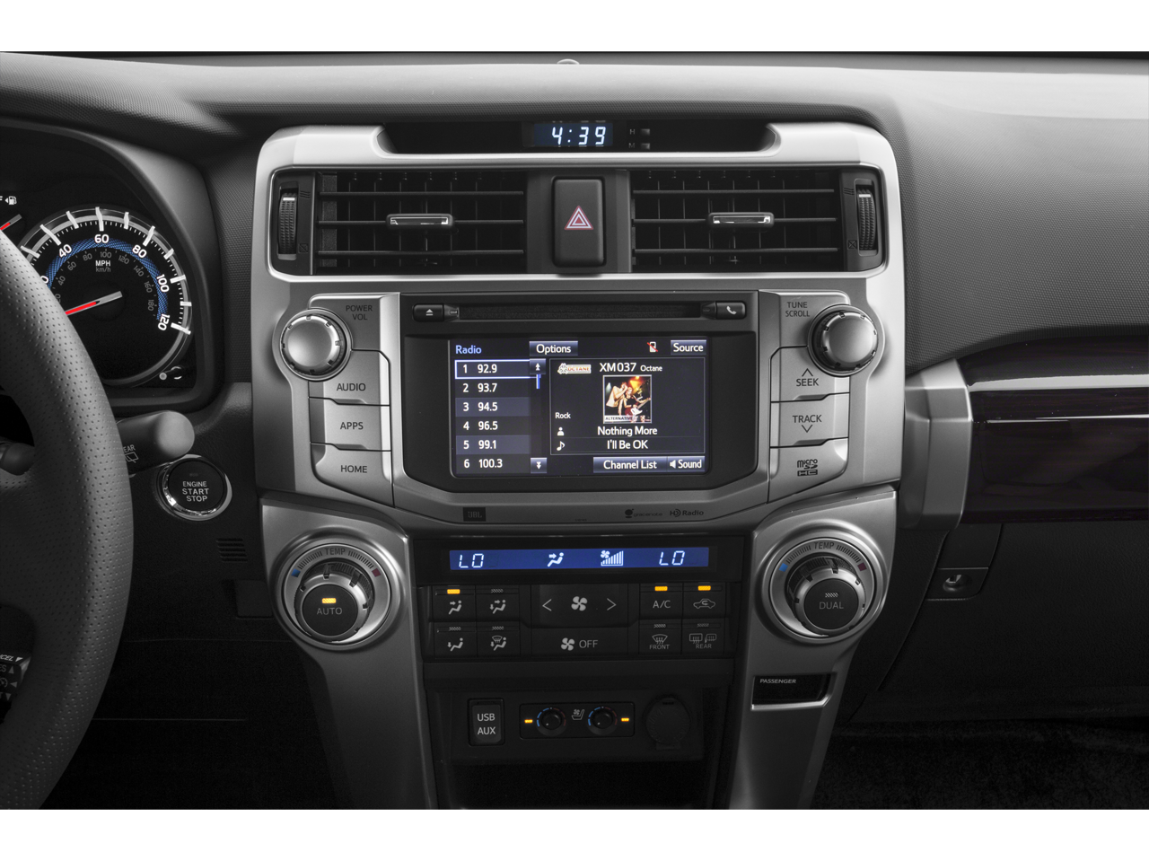 - Radio: Entune Premium JBL Audio w/Navigation -inc: Entune App Suite, 6.1" high-resolution touch-screen w/split-screen display, AM/FM cache radio, HD Radio, CD player, 15 JBL GreenEdge speakers including subwoofer amplifier, auxiliary port, USB 2.0 port w/iPod connectivity and control, advanced voice recognition, hands-free phone capability, phone book access and music streaming via Bluetooth® wireless technology, Siri Eyes Free, HD Radio predictive traffic and Doppler weather overlay, and SiriusXM satellite radio w/3-month all access trial Access to Entune services is subscription free. See toyota.com/entune for details.