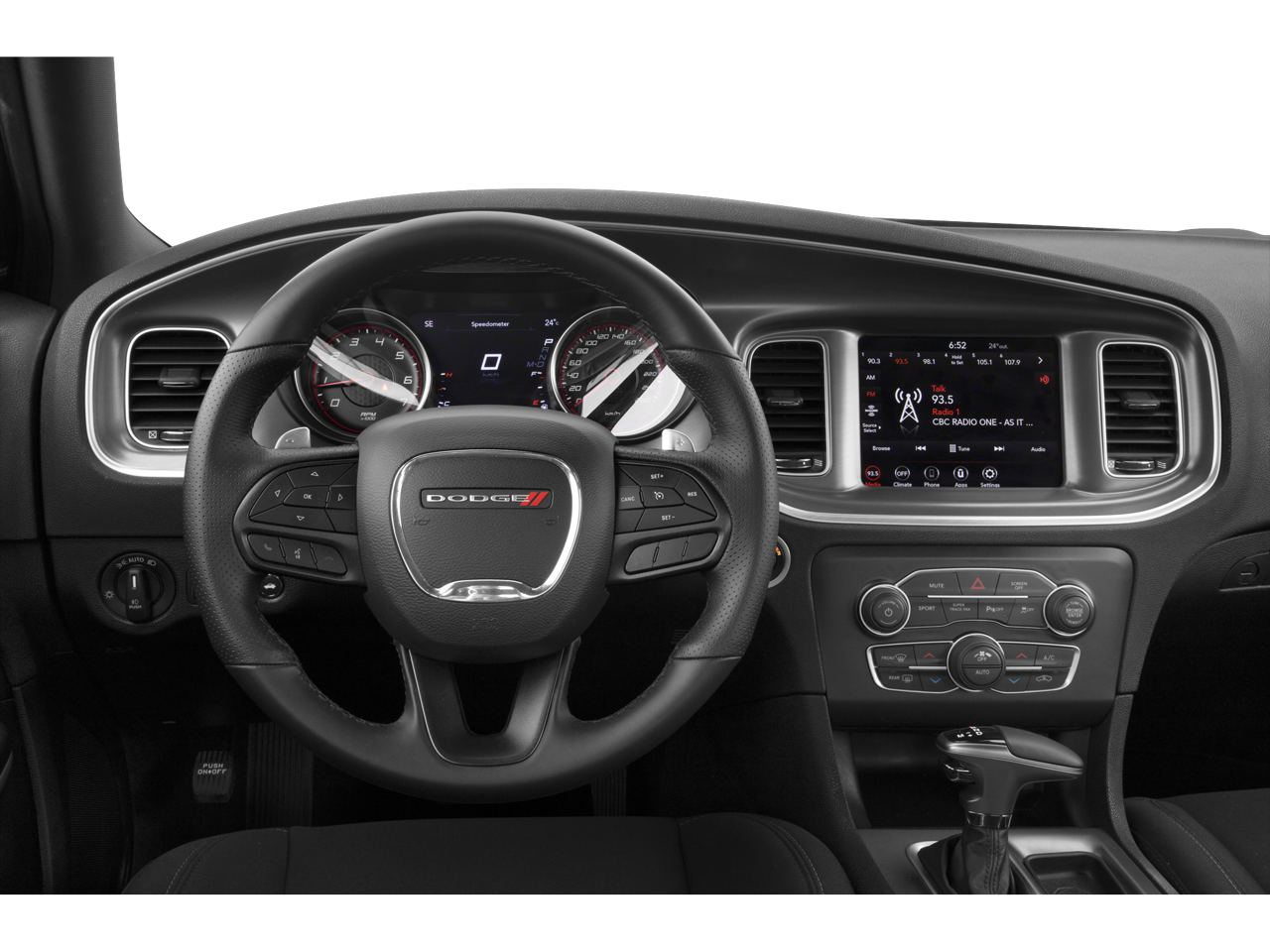 Inside, the Charger combines performance-inspired design with modern technology. The cabin features performance seats, 8-way power driver seat, leather-wrapped steering wheel with mounted audio controls, and a Uconnect® 4C system with an 8.4-inch touchscreen. You’ll also enjoy Apple CarPlay® and Android Auto™ compatibility, Alpine® premium audio with 6 speakers, and a 4G LTE Wi-Fi hotspot, keeping you connected wherever the road takes you.