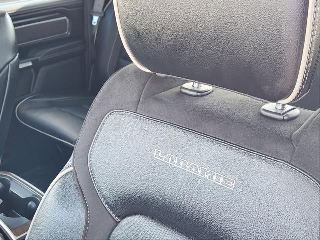 Imagine yourself behind the wheel, surrounded by the comfort and convenience of this exceptional truck. The Laramie's off-white exterior, complemented by the elegant black leather interior, exudes a sophisticated and timeless appeal. Step inside and you'll be greeted by the Uconnect 5 infotainment system's expansive 12-inch touchscreen, providing seamless connectivity and navigation.