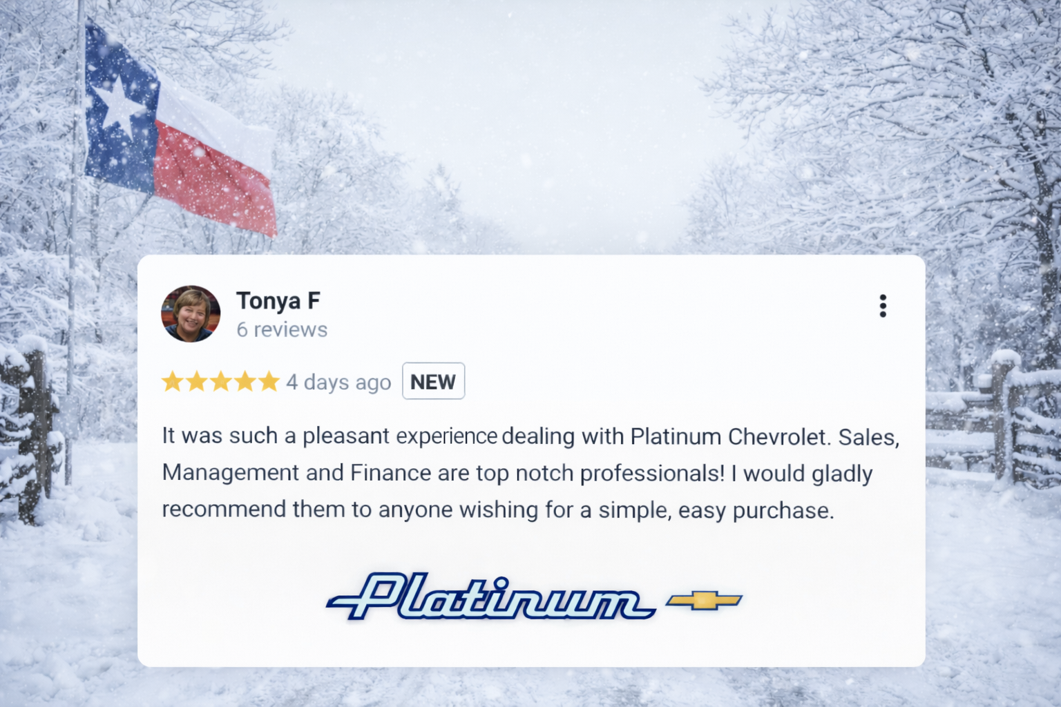 At Platinum Chevrolet Cadillac: