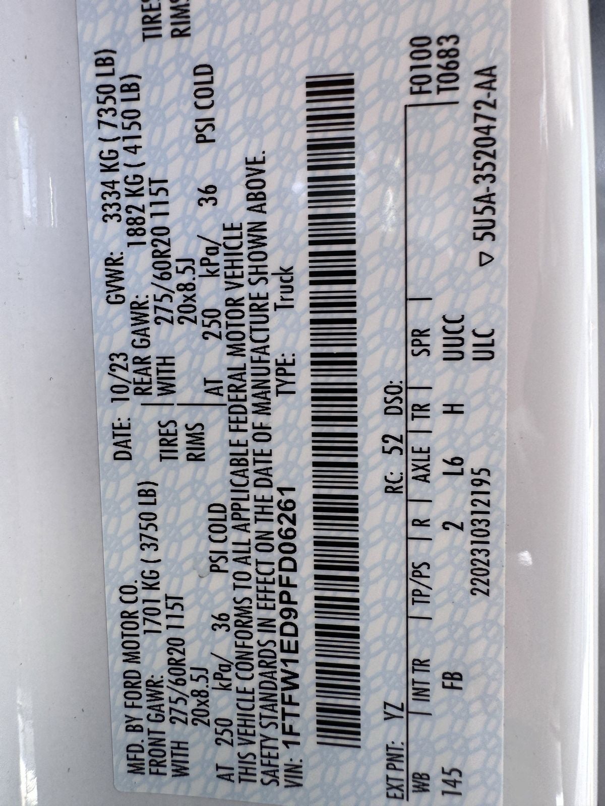 - Gross Vehicle Weight Rating Cap (lbs): 6470
