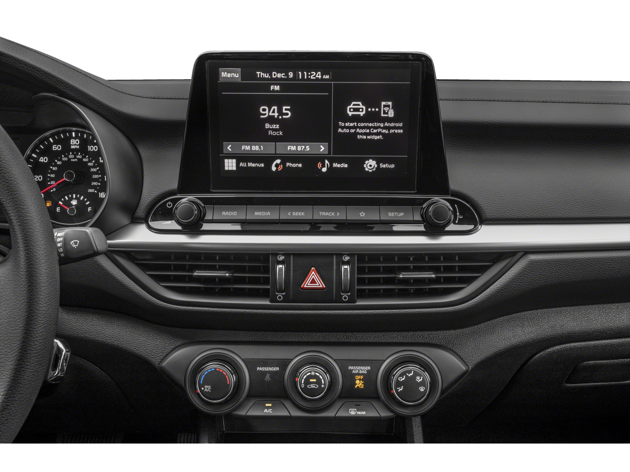 This 2023 Kia Forte LXS comes nicely equipped with the following 16 x 6.5J Alloy Wheels, 4 Speakers, 4-Wheel Disc Brakes, ABS brakes, Air Conditioning, Alloy wheels, AM/FM radio, Apple CarPlay & Android Auto, Auto High-beam Headlights, Brake assist, Bumpers: body-color, Cargo Mat, Cargo Net, Carpet Floor Mats, Cloth Seat Trim, Delay-off headlights, Driver door bin, Driver vanity mirror, Dual front impact airbags, Dual front side impact airbags, Electronic Stability Control, Exterior Parking Camera Rear, Front anti-roll bar, Front Bucket Seats, Front Center Armrest, Front reading lights, Front wheel independent suspension, Fully automatic headlights, Illuminated entry, Low tire pressure warning, Occupant sensing airbag, Outside temperature display, Overhead airbag, Overhead console, Panic alarm, Passenger door bin, Passenger vanity mirror, Power door mirrors, Power steering, Power windows, Radio data system, Radio: 8 Display Audio, Rear window defroster, Remote keyless entry, Security system, Speed control, Split folding rear seat, Steering wheel mounted audio controls, Tachometer, Telescoping steering wheel, Tilt steering wheel, Traction control, Trip computer, Variably intermittent wipers, and Wheel Locks. 28/39 City/Highway MPG