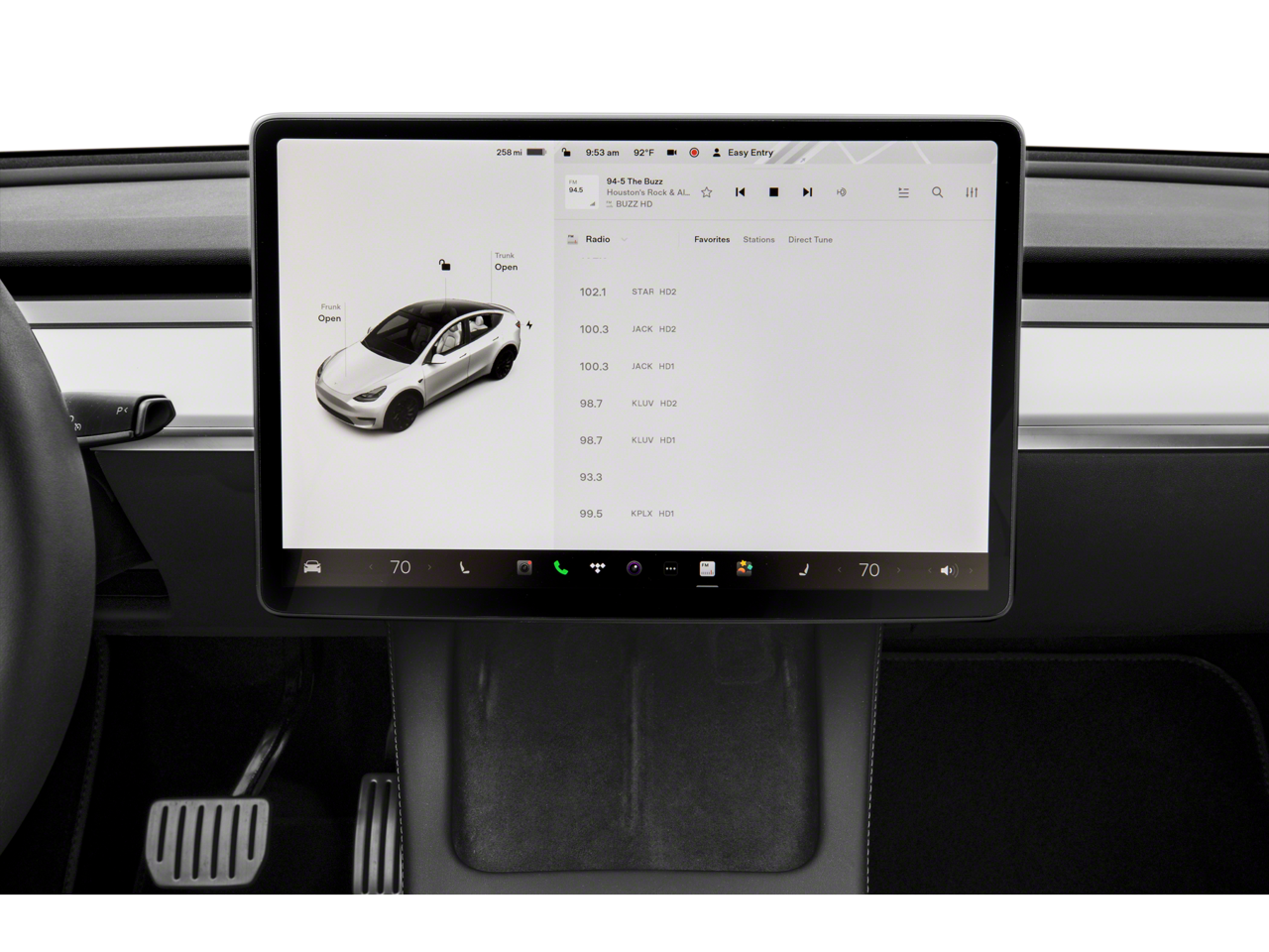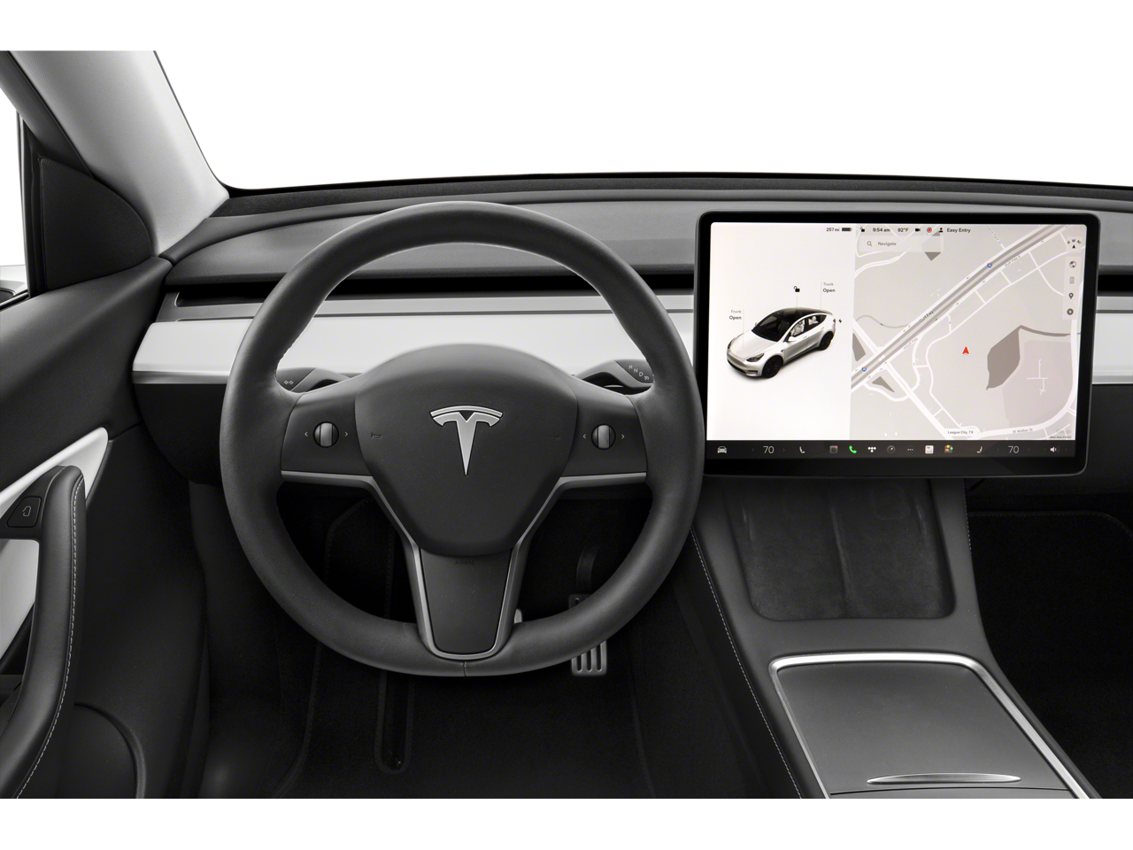 This 2023 Tesla Model Y Long Range comes nicely equipped with the following 14 Speakers, 4-Wheel Disc Brakes, 5 Seat Interior, 9.0 Axle Ratio, ABS brakes, Air Conditioning, Alloy wheels, Audio memory, Auto High-beam Headlights, Auto tilt-away steering wheel, Auto-dimming door mirrors, Auto-dimming Rear-View mirror, Automatic temperature control, Brake assist, Bumpers: body-color, Compass, Delay-off headlights, Driver door bin, Driver vanity mirror, Dual front impact airbags, Dual front side impact airbags, Electronic Stability Control, Emergency communication system, Exterior Parking Camera Rear, Four wheel independent suspension, Front anti-roll bar, Front Bucket Seats, Front Center Armrest, Front dual zone A/C, Front fog lights, Front reading lights, Fully automatic headlights, Genuine wood dashboard insert, Heated door mirrors, Heated front seats, Heated rear seats, Heated steering wheel, HVAC memory, Illuminated entry, Knee airbag, Lane Departure Warning System, Low tire pressure warning, Memory seat, Navigation System, Occupant sensing airbag, Outside temperature display, Overhead airbag, Passenger door bin, Passenger vanity mirror, Power door mirrors, Power driver seat, Power Liftgate, Power passenger seat, Power steering, Power windows, Premium Audio System, Radio data system, Rain sensing wipers, Rear reading lights, Rear seat center armrest, Rear window defroster, Security system, Speed control, Speed-sensing steering, Split folding rear seat, Steering wheel memory, Steering wheel mounted A/C controls, Steering wheel mounted audio controls, Telescoping steering wheel, Tilt steering wheel, Traction control, Trip computer, Variably intermittent wipers, Vegan Leather Seat Trim, and Wheels: 19 x 9.5 Gemini. 127/117 City/Highway MPG