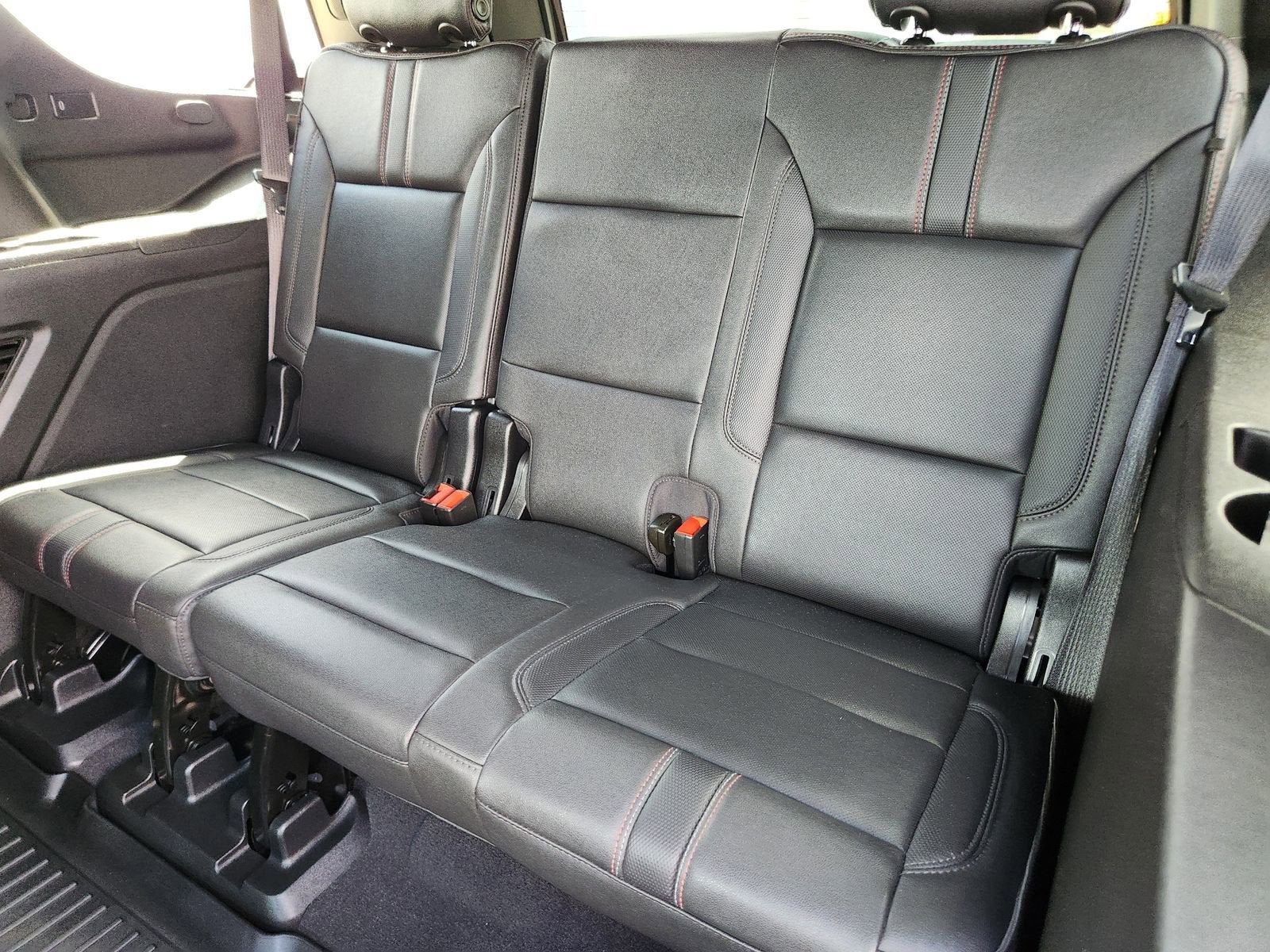 Finished in Radiant Red Tintcoat with Jet Black/Victory Red leather interior, this Tahoe stands out with a sporty look and refined cabin.