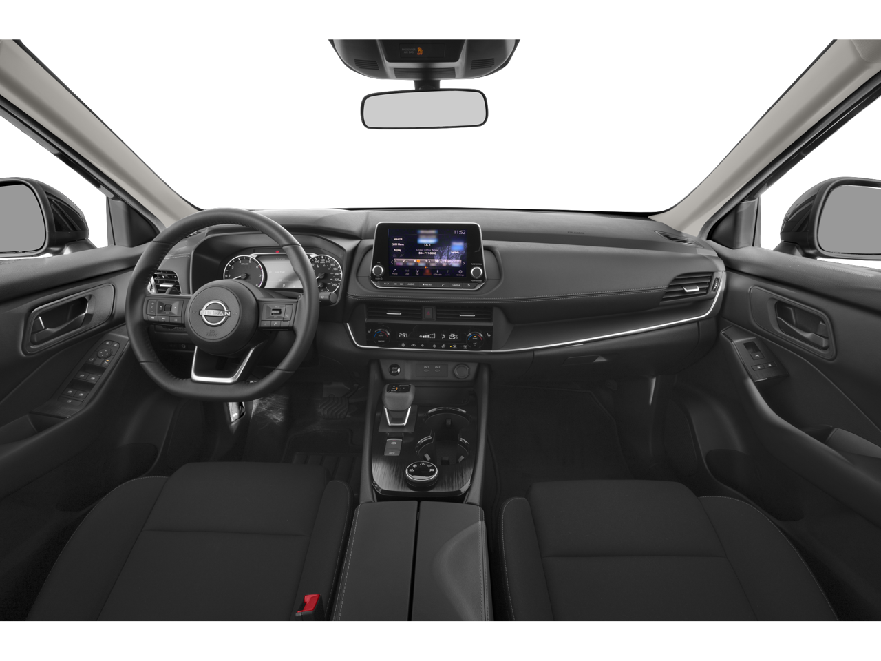 This 2024 Nissan Rogue S in Glacier White comes with the following features: 17 Aluminum Alloy Wheels, 4 Speakers, 4-Wheel Disc Brakes, 5.676 Axle Ratio, ABS brakes, Air Conditioning, Alloy wheels, AM/FM radio: SiriusXM, Auto High-beam Headlights, Blind Spot Warning, Brake assist, Bumpers: body-color, Cloth Seat Trim, Delay-off headlights, Driver door bin, Driver vanity mirror, Dual front impact airbags, Dual front side impact airbags, Electronic Stability Control, First Aid Kit, Floor Mats w/1-Piece Cargo Area Protector, Four wheel independent suspension, Front anti-roll bar, Front Bucket Seats, Front Center Armrest, Front reading lights, Fully automatic headlights, Illuminated entry, Knee airbag, Low tire pressure warning, NissanConnect featuring Apple CarPlay and Android Auto, Occupant sensing airbag, Outside temperature display, Overhead airbag, Overhead console, Panic alarm, Passenger door bin, Passenger vanity mirror, Power door mirrors, Power steering, Power windows, Radio data system, Radio: AM/FM NissanConnect, Rear anti-roll bar, Rear Parking Sensors, Rear seat center armrest, Rear side impact airbag, Rear window defroster, Rear window wiper, Remote keyless entry, Speed control, Speed-Sensitive Wipers, Split folding rear seat, Spoiler, Steering wheel mounted audio controls, Tachometer, Telescoping steering wheel, Tilt steering wheel, Traction control, Trip computer, and Variably intermittent wipers.