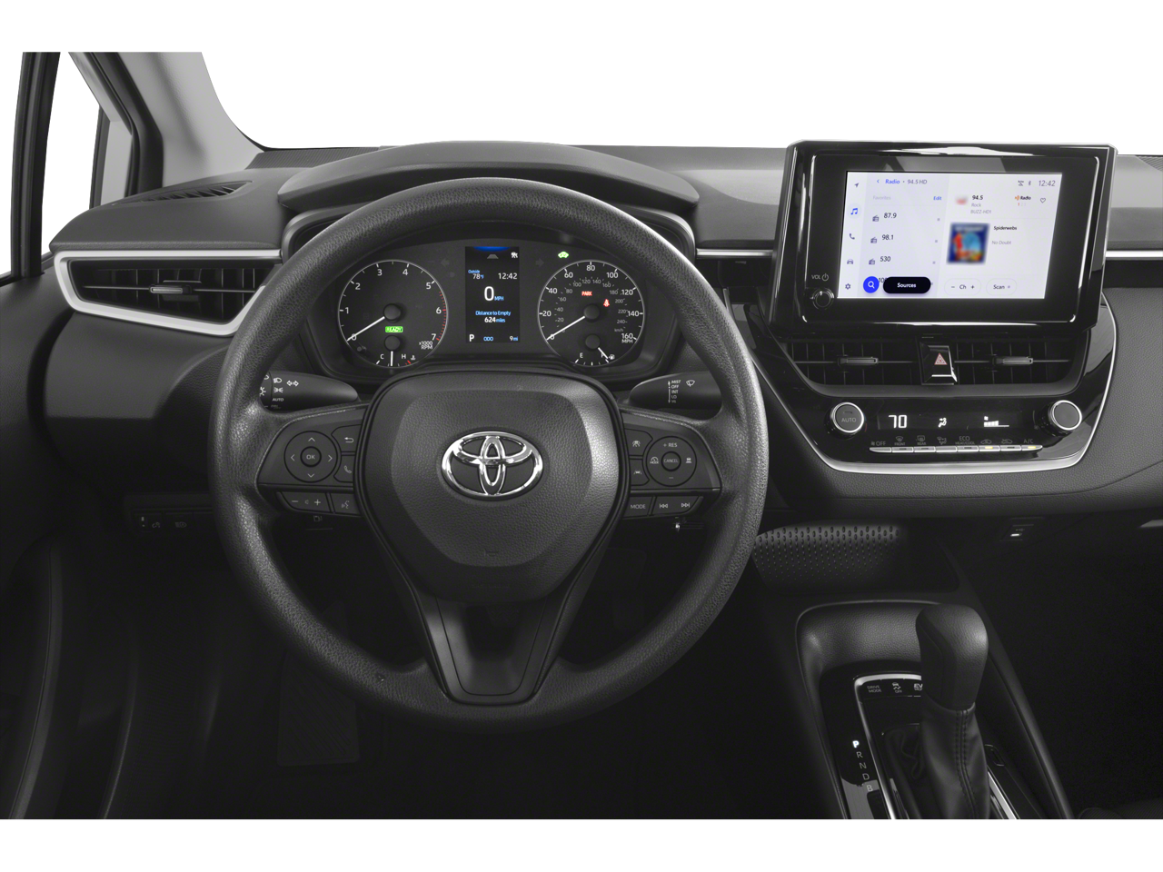 Step inside the Corolla Hybrid and you'll be greeted by a host of premium amenities, including 6 speakers, an 8 Toyota Audio Multimedia system, and automatic temperature control. The rear window defroster and power windows ensure your comfort, while the steering wheel-mounted audio controls and tilt/telescoping steering wheel provide intuitive command of your vehicle.