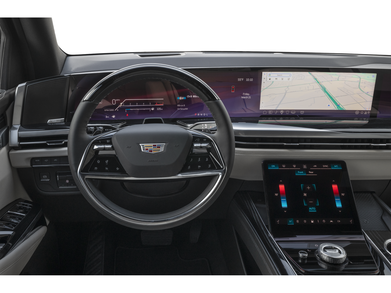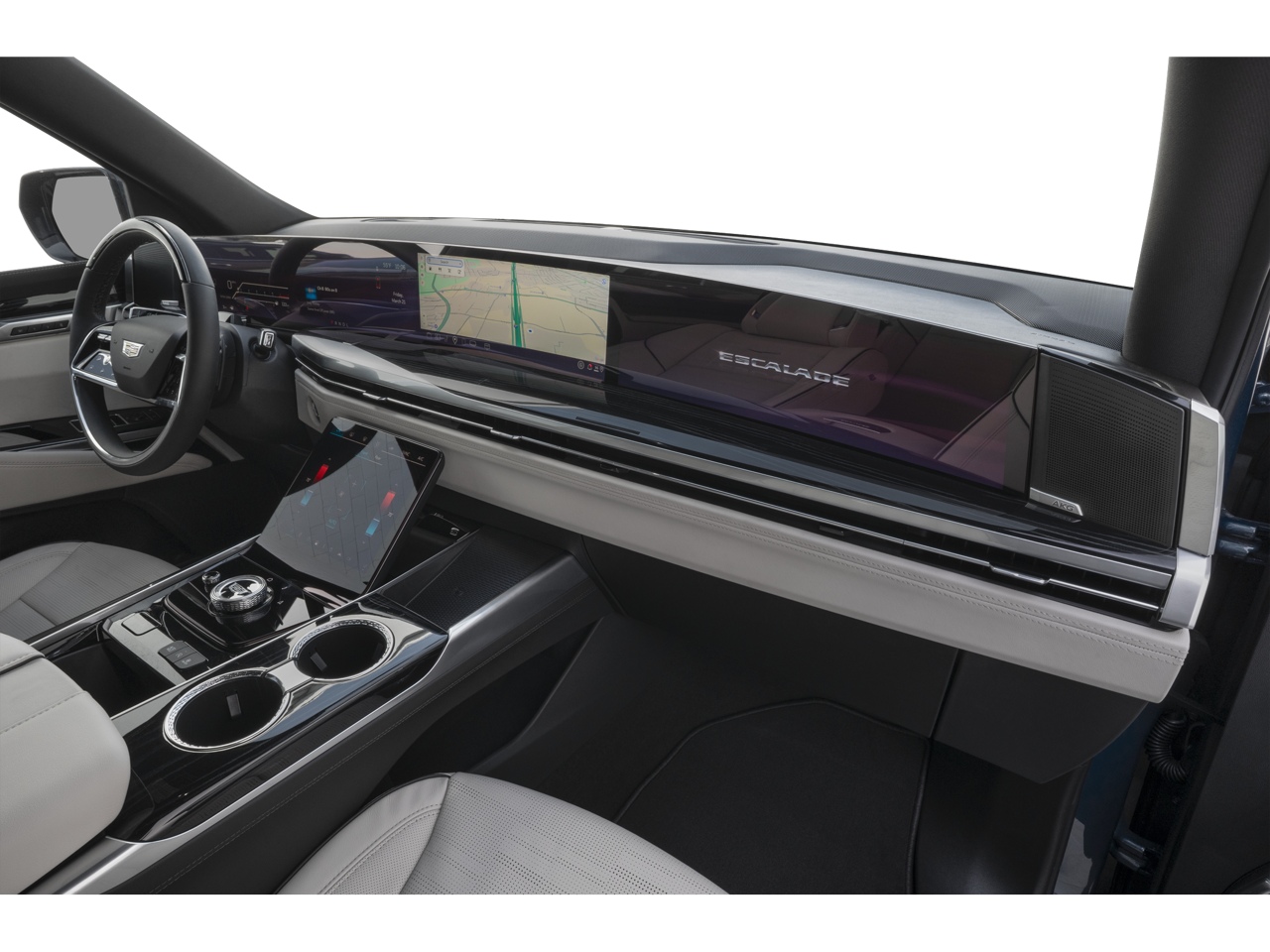 The interior of the Escalade Sport Platinum is a true sanctuary, featuring the AKG Studio Reference 36-Speaker Audio System, Heads-Up Display, and a Reconfigurable Full-Color Head-Up Display, ensuring an immersive and technologically advanced driving experience. The Heated and Ventilated Driver and Front Passenger Seats, along with the Heated Rear Seats, provide unparalleled comfort, while the Wireless Apple CarPlay and Wireless Android Auto keep you connected on the go.