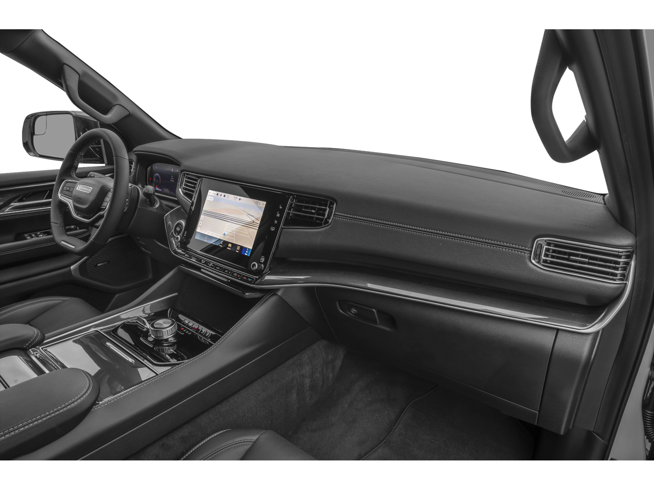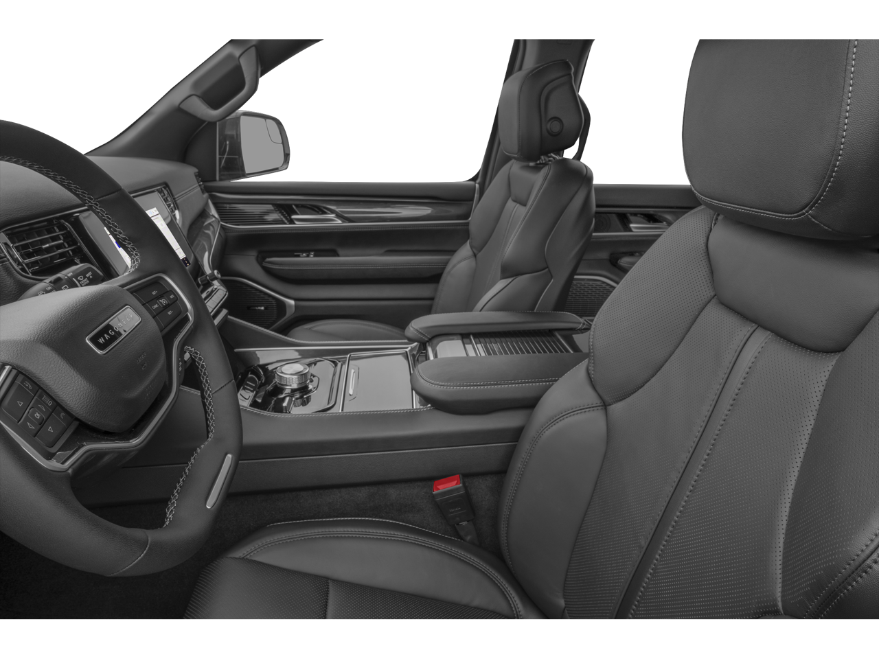The Wagoneer's premium features extend beyond its captivating appearance. Indulge in the comfort of its spacious and well-appointed interior, complete with a Surround View Camera System, 60/40 Power Recline 3rd Row Seat, and a state-of-the-art Uconnect 5 Nav infotainment system. The Quadra-Lift Air Suspension and Selec-Speed Control further enhance the Wagoneer's off-road prowess, ensuring a smooth and confident ride, no matter the terrain.