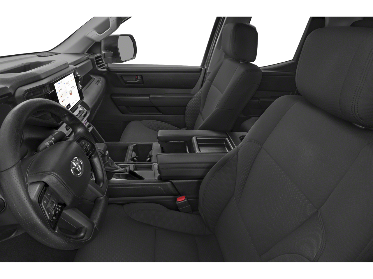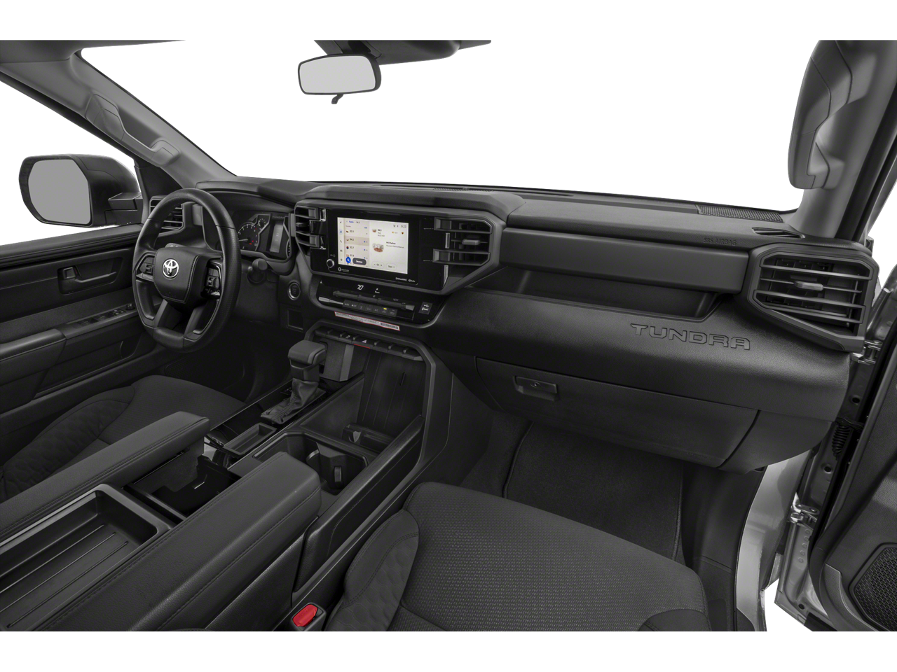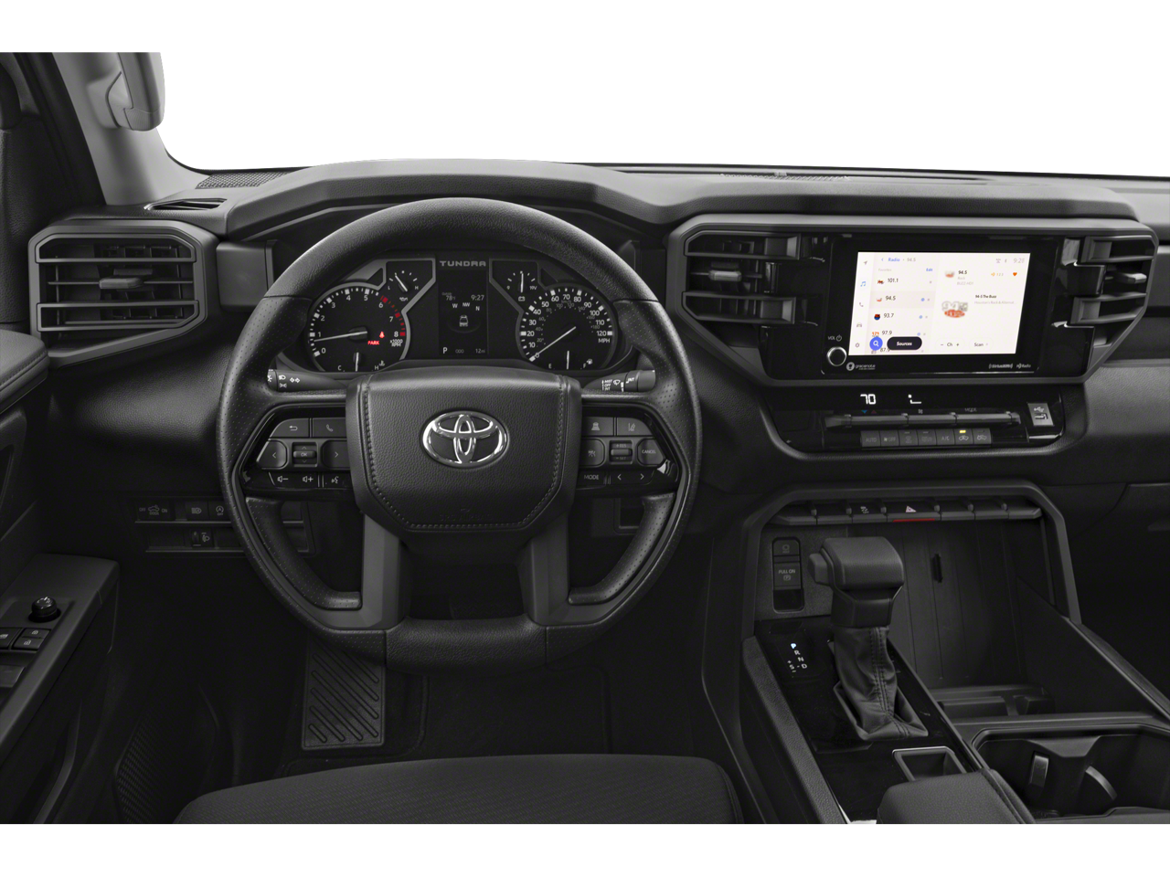 This 2025 Toyota Tundra SR in comes with the following features: 3.4L V6 10-Speed Automatic 4WD 4WD, Cloth, 18 Styled Steel Wheels, 3.31 Axle Ratio, 4-Wheel Disc Brakes, 6 Speakers, ABS brakes, Air Conditioning, AM/FM radio: SiriusXM, Apple CarPlay/Android Auto, Auto High-beam Headlights, Automatic temperature control, Brake assist, Bumpers: body-color, Delay-off headlights, Driver door bin, Driver vanity mirror, Dual front impact airbags, Dual front side impact airbags, Electronic Stability Control, Emergency communication system: Safety Connect (10-year trial), Exterior Parking Camera Rear, Fabric Seat Trim, Front anti-roll bar, Front Bucket Seats, Front Center Armrest, Front reading lights, Front wheel independent suspension, Fully automatic headlights, Heated door mirrors, Illuminated entry, Knee airbag, Low tire pressure warning, Occupant sensing airbag, Outside temperature display, Overhead airbag, Overhead console, Panic alarm, Passenger door bin, Passenger vanity mirror, Power door mirrors, Power steering, Power windows, Radio data system, Radio: Audio Multimedia System, Rear reading lights, Rear step bumper, Rear window defroster, Remote keyless entry, Safety Connect, Security system, Speed control, Speed-sensing steering, Split folding rear seat, Steering wheel mounted audio controls, Tachometer, Telescoping steering wheel, Tilt steering wheel, Traction control, Trip computer, Variably intermittent wipers, and Voltmeter.